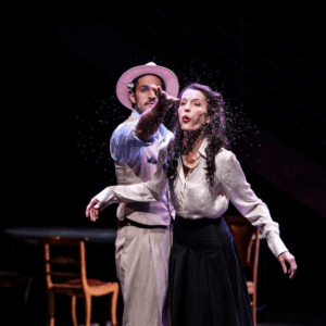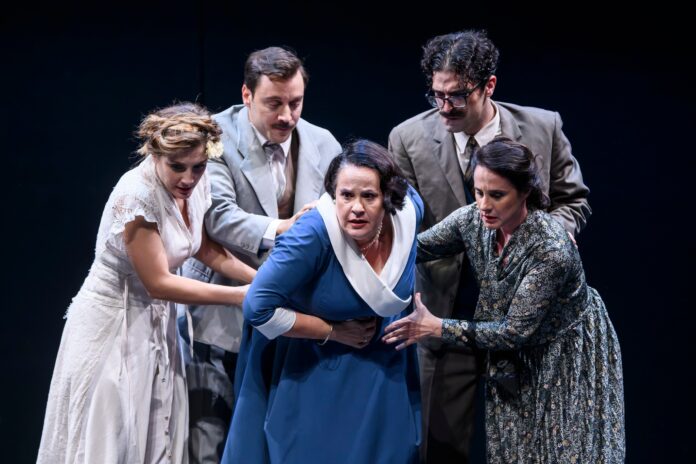 Φέτος το επέλεξε και το προτείνει  ο Στάθης Λιβαθινός με έμψυχο υλικό τη σταθερή ομάδα ηθοποιών με την οποία δουλεύει. Και πώς να αφηγηθείς το 2025 μια ιστορία που με αμεσότητα τέμνει τις πολιτικές, ταξικές, κοινωνικές και πολιτισμικές διαδρομές της Ελλάδας από τον Μεσοπόλεμο ως τη δεκαετία του ’50 και «μέσα από έναν κλαυσίγελο αφηγείται πράγματα σοβαρά ακόμα και τραγικά με όπλο το πανταχού παρόν χιούμορ»; Πώς να γίνει σύγχρονο θεατρικό αφήγημα, ένα κείμενο που με ευφυή και μεγαλειώδη τρόπο και με τον «συνεχή μονόλογο δύο γυναικών» αφηγείται μερικές από τις πιο σημαντικές στιγμές της ελληνικής ιστορίας του 20ού αιώνα,  όπως την βίωσαν δύο πρόσωπα που –και λόγω φύλου- εκπροσωπούν τη ραχοκοκαλιά αυτής της διαδρομής; Δύο γυναίκες, που ακολούθησαν τις αλλαγές, τις ανατροπές και τις οικονομικές επιπτώσεις των ιστορικών γεγονότων, που ήταν κάποτε εύπορες και μετά ξενοδούλεψαν, που πάλεψαν, διεκδίκησαν, αδικήθηκαν, πόνεσαν, αγαπήθηκαν, αγάπησαν, προδόθηκαν, στήριξαν. Που υπέφεραν «χωρίς να χάνουν το θάρρος και την αξιοπρέπειά τους». Πώς να γίνει ορατό το καθρέφτισμα συμπεριφορών που διαρκούν ακόμα, πώς να αναδειχθούν «οι ρίζες της νεοελληνικής κακοδαιμονίας»  χωρίς η παράσταση να διολισθήσει στη γραφικότητα ή τον διδακτισμό;  Δύσκολο το στοίχημα.