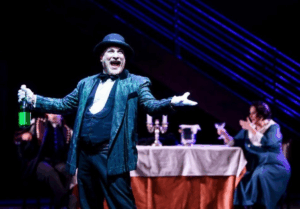 Και ο Στάθης Λιβαθινός το σκηνοθέτησε και με αποστασιοποίηση και με εγγύτητα. Άλλες συνέβαιναν στο φουαγιέ πίσω από τη σκηνή (οι πιο μακρινές, οι μνήμες), κι άλλες πάνω στη σκηνή. Με συμβολισμούς φυσικά, όπως εκείνη η σκάλα στο φουαγιέ της Φρυνίχου, την οποία ανέβαιναν όσοι αποχωρούσαν οριστικά –από την ιστορία και τη ζωή.  Και για να γίνει ακόμα πιο δυνατή η αίσθηση ότι παρακολουθούμε μια ιστορία στο θέατρο (για να απομακρυνθεί ακόμα περισσότερο από τον ρεαλισμό δηλαδή), έδειξε ότι οι ιστορίες της Εκάβης και της Νίνας, του Αντώνη και του Γιάννη, της Ερασμίας και της Πολυξένης, του Δημητράκη και της Μαρίας είναι ιστορίες που παίζονται σε μια σκηνή, που έχει φώτα, μουσική και… κομπέρ. Και ήταν αυτή η προσθήκη από τις πιο ενδιαφέρουσες ιδέες της παράστασης, την οποία ενίσχυσαν δραστικά και οι στίχοι του Στρατή Πασχάλη στα τραγούδια (που ήταν και σύνδεσμοι των ιστορικών γεγονότων και περιόδων) και η ερμηνεία του Νίκου Καρδώνη ως κομπέρ.