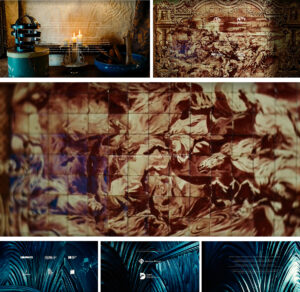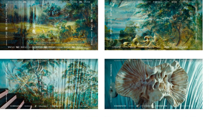 Ο «έξω κόσμος» είναι το πρώτο πράγμα που βλέπουμε. Η επιλογή της εικόνας μοιάζει να ταυτίζεται με το πρώτο μας βλέμμα. Η επιλογή ενός τοπίου, μιας αναπαράστασης με ελαφριές ρωγμές (μια και είναι ζωγραφισμένος σε έναν τοίχο), μας παραπέμπει αρχικά στην διαμεσολαβημένη μας εικόνα για τον κόσμο, ακόμη και εάν έχουμε την ψευδαίσθηση ότι τα μάτια μας είναι απλώς οι αισθητηριακές μας κάμερες. Το βλέμμα μας αποτελεί πάντα προϊόν μιας κατασκευής, των φίλτρων που έχουμε κληρονομήσει. Η δεύτερη εικόνα παραμένει στο ίδιο ύφος, αλλά υπάρχει μεγαλύτερη ένταση. Ένας ανάγλυφος κυματισμός αποσταθεροποιεί την επίπεδη επιφάνεια και ενεργοποιεί μία ακόμη ερμηνεία. Μπορεί οι εικόνες να μην αφορούν μόνο τον τρόπο που βλέπουμε, αλλά να είναι οι δικές μας αντανακλάσεις. Με αυτή τη σύνδεση η εικόνα δεν αναφέρεται μόνο σε ένα περιβάλλον που διαρκώς μεταβάλλεται, αλλά και σε εμάς τους ίδιους. Βρισκόμαστε πάντοτε σε κίνηση, με εντάσεις και κυματισμούς, μέχρι που συγκροτούμαστε σε ένα «σώμα», σε ένα «χώρο», όπως είναι το δωμάτιο που ακολουθεί. Σε πρώτο πλάνο, ο τρόπος που συστηνόμαστε στον κόσμο, το δέντρο, λίγο πιο πίσω το σώμα μας απογυμνωμένο, ανοιχτό, όπως συναντάται στο ανατομικό τραπέζι. Η επόμενη εικόνα μας επαναφέρει σε μία συνθήκη αφαιρετική, ξαναγινόμαστε τοπίο για να μας οδηγήσει στην επόμενη. Από απόσταση παρουσιάζουμε μοτίβα συμπεριφοράς, πτυχώσεις, τα οποία μεταφέρονται στο φόντο, καθώς ανεβαίνουμε και κατεβαίνουμε σκάλες. Αλλά στην ουσία, από την φύση μας και μέσα σε αυτή, είμαστε απλώς απολιθώματα μέσα στον χρόνο. Κελύφη. Και ακόμη και όταν πρέπει να τετραγωνιστούμε, να κατηγοριοποιήσουμε (και να κατηγοριοποιηθούμε), αναγνωρίζουμε ότι είμαστε πολλαπλοί. Ο καταπληκτικός πίνακας του Filippo Balbi (1806-1890) συνομιλεί με τον πίνακα που είχαμε συναντήσει νωρίτερα στο δεύτερο επίπεδο του δωματίου. Πίνακες που παραπέμπουν στην ανατομία, σε εσώτερες, σουρεαλιστικές ματιές και λειτουργούν ως οδηγοί/φίλτρα για την ερμηνεία της αφήγησης που αναπτύσσεται.