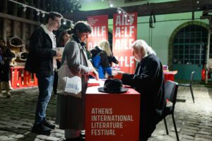 Χθες όμως στην Τεχνόπολη ο Λάσλο δεν ήταν ο τουρίστας του μικρού κρητικού χωριού αλλά ο σταρ της λογοτεχνίας που έδωσε μια υπέροχη performance στο πλαίσιο του νεοσύσταστου Διεθνούς Φεστιβάλ Λογοτεχνίας της Αθήνας. Βγήκε στη σκηνή του κατάμεστου αμφιθεάτρου Μ. Έβερτ μέσα από μια μικρή πόρτα μαζί με τη συνομιλήτριά του, δημοσιογράφο του New Yorker, Μερβ Έμρε για να απαντήσει στις ερωτήσεις της. Ψηλός, φορώντας ένα παλιομοδίτικο μαύρο κοστούμι, τινάζοντας ελαφρά τη μικρή του περιφερειακή χαίτη από άσπρα μαλλιά, έδειχνε πολύ άνετος, ευγενής και κυρίως στοχαστικός χωρίς στόμφο.