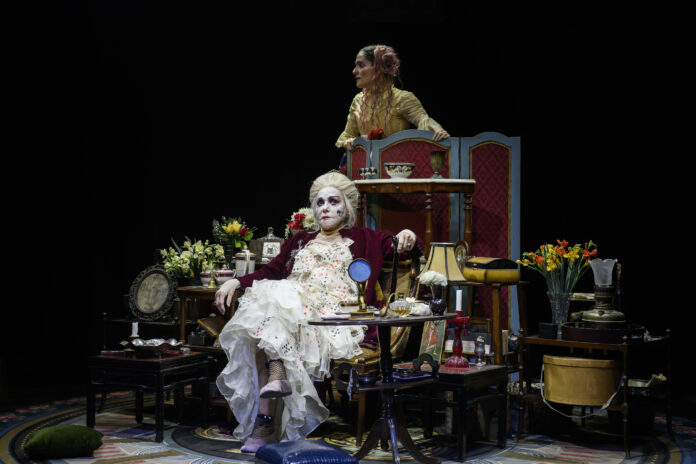 Προσπάθησε, επί σκηνής, να συνενώσει το ρεαλιστικό και το φανταστικό-μεταφυσικό ο Στάθης Λιβαθινός, ακριβώς για να αγγίζει το ύφος και το περιεχόμενο της νουβέλας. Έβαλε γι’ αυτόν τον λόγο έναν εμβόλιμο ρόλο στην παράσταση, που ερμήνευσε η Δήμητρα Χατούπη, αποδίδοντας όλες τις αποχρώσεις του δέους και της ανατριχίλας, δημιουργώντας να πρόσωπο που τρομάζει, προβλέπει και κινεί τα νήματα, ακριβώς όπως κινεί το περιστρεφόμενο, σαν καρουζέλ, σκηνικό, που ήταν το κάστρο και το οχυρό της Κόμισσας Άννας Φεντότοβνα, την οποία υποδύθηκε θαυμάσια η Μπέττυ Αρβανίτη.