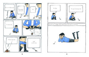 Ένα ακόμη στοιχείο που εντάσσει το βιβλίο στον σύγχρονο τρόπο αφήγησης των graphic novels είναι η έντονη κινηματογραφικότητα των πλάνων. Οι σελίδες λειτουργούν σαν σκηνοθετημένα καρέ, εναλλαγές γωνιών λήψης, κοντινά και μακρινά πλάνα, σκηνές που «αναπνέουν» χωρίς λόγια. Άλλωστε, ο αναγνώστης μεταφέρεται από εικόνα σε εικόνα με έναν οπτικό ρυθμό που θυμίζει κινηματογραφικό μοντάζ. Η αφήγηση δεν βασίζεται μόνο στο κείμενο, αλλά στον τρόπο που το βλέμμα κινείται στον χώρο της σελίδας.