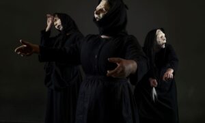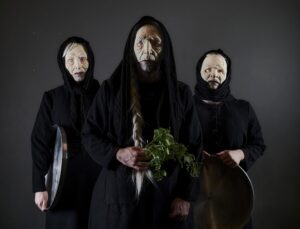 Περίεργος τίτλος, περίεργη και η σκηνική όψη αυτής της παράστασης, που ξεκίνησε τον Μάρτιο του 2023 από την Πειραματική Σκηνή του Θεσσαλικού Θεάτρου και στο πλαίσιο της περιοδείας του έκανε στάση και στο θέατρο «Σταθμός». Τρεις γυναικείες γεροντικές φιγούρες κινούνται στη σκηνή και παράλληλα ακούγονται αφηγήσεις, αναμνήσεις από στιγμές της καθημερινότητας σε παλαιότερα χρόνια, συνταγές, έθιμα, δεισιδαιμονίες. Το πρώτο που παρατηρεί ο θεατής είναι η καταπληκτική κινησιολογία των τριών ηθοποιών, όλοι άντρες, που φορούν μάσκες, αλλά με τη στάση του σώματος και τα ρούχα που φορούν θυμίζουν ευθέως μεσόκοπες γυναίκες σε μια ελληνική επαρχία τη δεκαετία του ’50 ή του ’60 –μπορεί και λίγο αργότερα. «Με ξόρκια και με μαγικά» και με δημοτικά τραγούδια αφηγούνται στιγμές της ζωής τους. Παρατηρώ τους τρόπους –δεν είναι ένας- που δένουν το μαντήλι τους. Ακούω τα ονόματα τα χίλια των φυτών, των βοτάνων που λένε, ή τα «κτερίσματα», για «να τρων’ οι πεθαμένοι» (ευθεία, δημιουργική συνομιλία με δημοτικά τραγούδια που πλαισιώνουν την παράσταση). Παρεμβάλλονται παροιμίες –«αν βρέξει ο Μάρτης δυο νερά, κι ο Απρίλης άλλο ένα, να δεις κουλούρια τα παιδιά, και πίτες οι μανάδες». Η σκληρή καθημερινότητα των γυναικών της υπαίθρου, που είχαν ευθύνη για τα πάντα και δικαιώματα πενιχρά. Και πάντα εντός του οίκου. Ακόμα κι εκείνη που έφυγε –με τον άντρα της φυσικά- για την πόλη, μέσα στο σπίτι έμενε… Και δεν είχε να μιλήσει με κανέναν στο σπίτι της πόλης, την πολυκατοικία. Κι όταν θέλησε να κάνει ένα βήμα έξω από αυτό γνώρισε τη βαναυσότητα του άντρα της. Αυτά τα βότανα έγιναν το δικό τους πεδίο δράσης και ηγεμονίας. Αυτοί οι καρποί της γης με τα δεκάδες ονόματα, έγιναν μυρωδικά στις πίτες αλλά και βότανα θεραπευτικά για πάσα νόσο και βασκανία. Για τη «βοή», το μάτιασμα, κι άλλα πολλά: «Ζήλευε ο κόσμος τον άλλον; Το ‘λεγαν βοή».