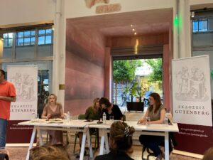 Αρκετό χιούμορ, αυτοσαρκασμό αλλά προπαντός ειλικρίνεια και λέξεις που χτυπάνε κατευθείαν στο ψαχνό, αποκομίσαμε από την παρουσία της Βρετανίδας συγγραφέως Rachel Cusk κατά την εκδήλωση που διοργάνωσαν οι εκδόσεις Gutenberg την Τρίτη, 27 Μαΐου στην Δημοτική Αγορά της Κυψέλης. Η συγγραφέας συνομίλησε με τη συγγραφέα Αμάντα Μιχαλοπούλου και την ποιήτρια Δανάη Σιώζιου.